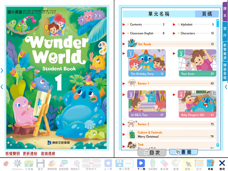 版 英語電子書 Wonder World 第1冊(含課本、習作含解答) 教學光碟