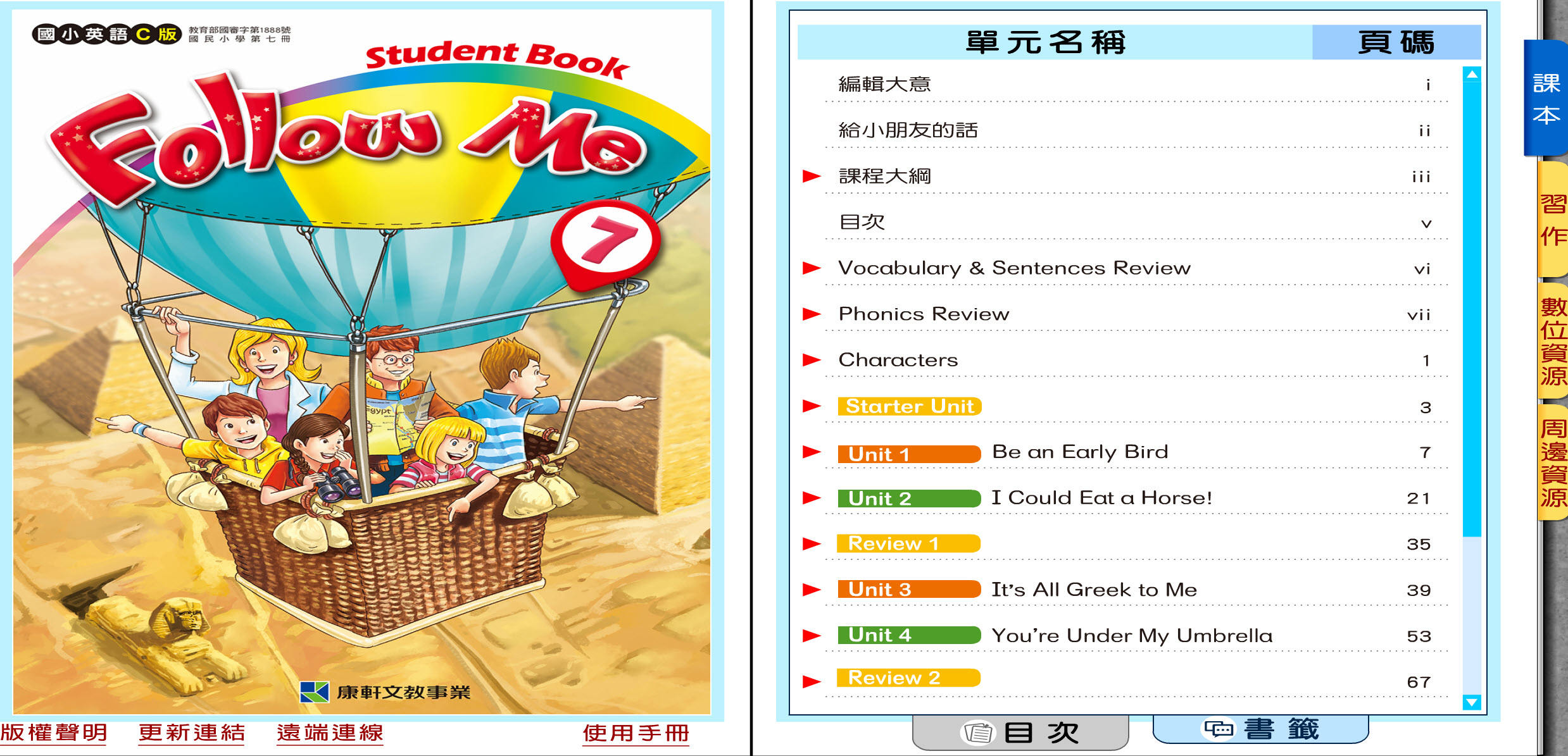 112學年上學期 國小 康軒版 英語電子書 Follow Me 第7冊(含課本、習作含解答) 教學光碟