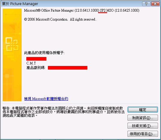 • 2009年5月 Microsoft Office 2007 System SP2 台灣官方繁體中文版(DVD版)