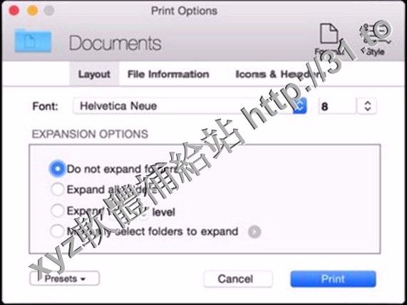 打印窗口允許您靈活地選擇文件信息