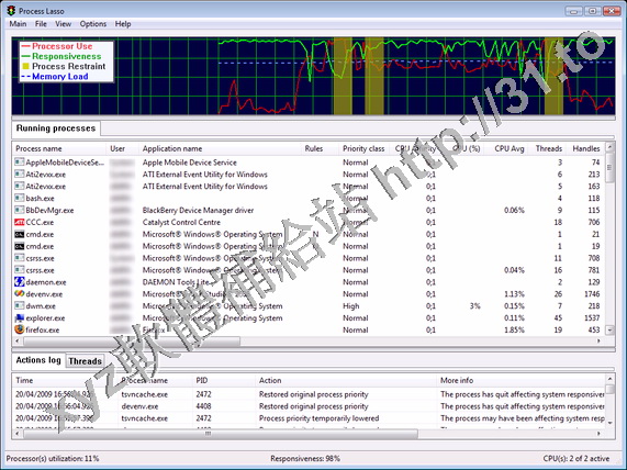 Process Lasso 是一款獨特的調試級別的系統優化工具,主要功能是動態調整各個進程的優先級並