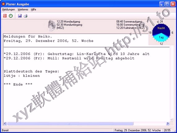 Kalenderblaettern的舉動。根據要求,月相,日出/地下室盲長度
